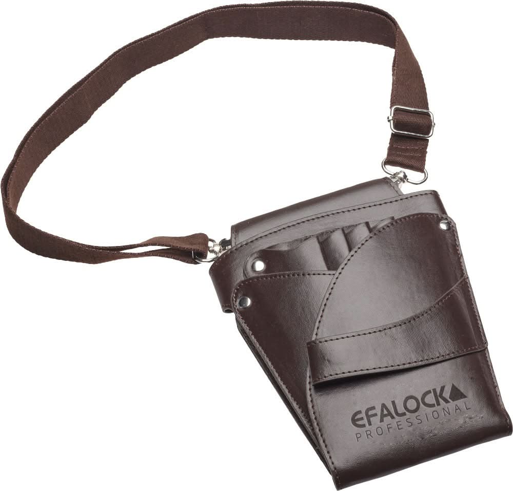 Hylsteret har fem separate rom for sakser, en romslig lomme for større verktøy, samt en praktisk horisontal klaff for feste av klips. Nederst sitter en trykknapp som gjør det enkelt å åpne og fjerne avklipte hår, slik at hylsteret alltid holder seg rent og klart til bruk.